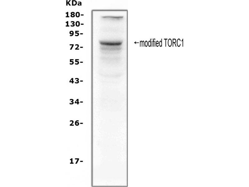 - A synthetic peptide corresponding to a sequence at the C-terminus of human TORC1, different from the related rat and mouse sequences by two amino acids.
