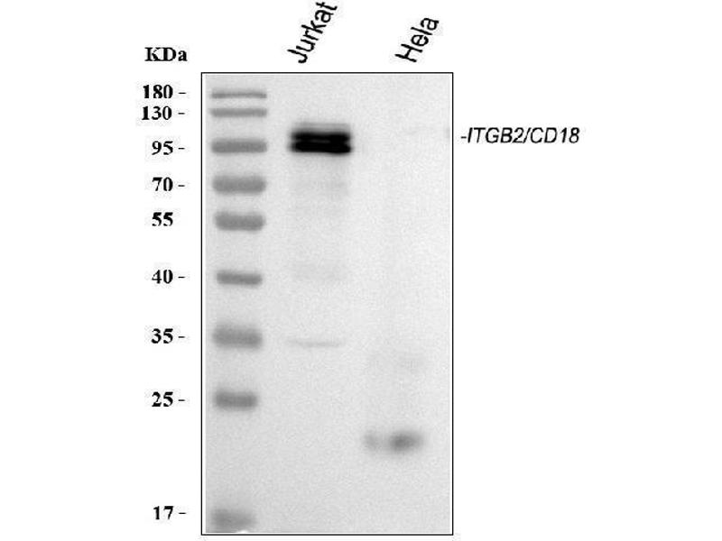 Background: ITGB2 (INTEGRIN, BETA-2), also known as CD18, is a protein that in humans is encoded by the ITGB2 gene. ITGB2 is an integrin protein that belongs to the class of cell membrane glycoproteins. The beta-2 integrin chain gene is designated ITGB2 and the leukocyte antigen has been designated CD18. The ITGB2 gene is mapped to 21q22.3. The expression of CD18 is increased in lymphoblastoid cells from persons with Down syndrome, consistent with the location of the gene on chromosome 21. In humans lack of ITGB2 causes Leukocyte Adhesion Deficiency, a disease defined by a lack of leukocyte extravasation from blood into tissues. Although ITGB2 is expressed on the cell surface at normal levels and is capable of function following extracellular stimulation, it could not be activated via the 'inside-out' signaling pathways.