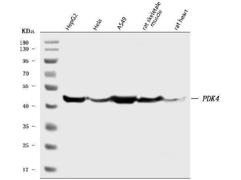 - Anti-PDK4 Antibody (ABIN3043461). Tested in WB applications. This antibody reacts with Human, Rat. This is a premium antibody that guarantees superior quality, high affinity, and strong signals with minimal background in Western blot applications.