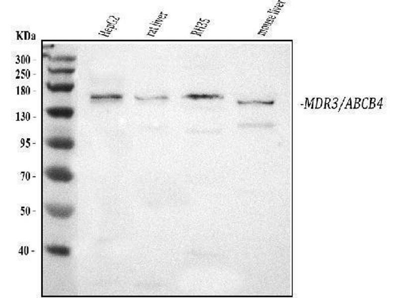 - Anti-ABCB4 Antibody (ABIN3043734). Tested in Flow Cytometry, IHC, WB applications. This antibody reacts with Human, Mouse, Rat. This is a premium antibody that guarantees superior quality, high affinity, and strong signals with minimal background in Western blot applications.
