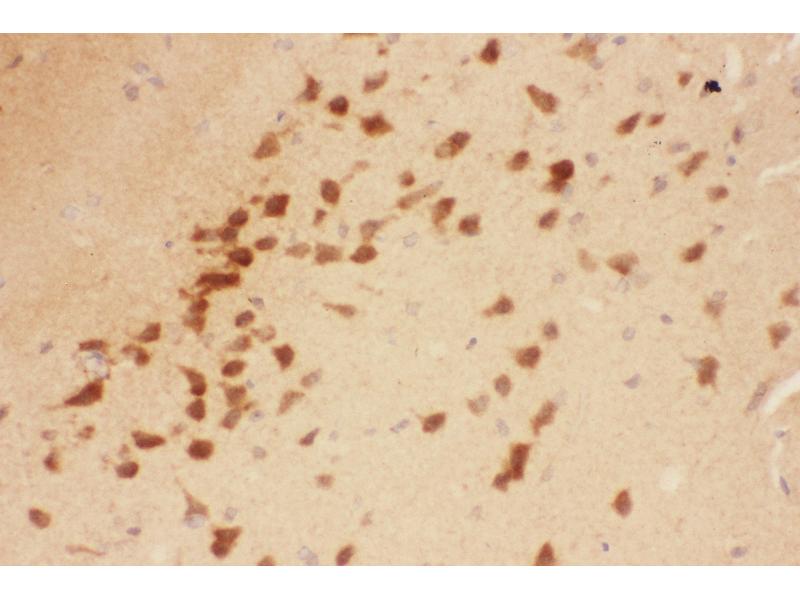 Immunohistochemistry (Paraffin-embedded Section), 2-5 μg/mL, Mouse, Rat1. Jones, K. R., Reichardt, L. F. : Molecular cloning of a human gene that is a member of the nerve growth factor family. Proc. Nat. Acad. Sci. 87: 8060-8064, 1990. 2. Lee, R., Kermani, P., Teng, K. K., Hempstead, B. L. : Regulation of cell survival by secreted proneurotrophins. Science 294: 1945-1948, 2001 . 3. Pruunsild, P., Kazantseva, A., Aid, T., Palm, K., Timmusk, T. : Dissecting the human BDNF locus: biional transcription, complex splicing, and multiple promoters. Genomics 90: 397-406, 2007. -