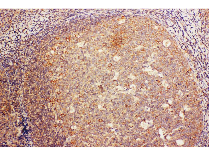 Background: CD68, cluster of differentiation, is a 110-kD transmembrane glycoprotein that is highly expressed by human monocytes and tissue macrophages. CD68 is a member of a family of hematopoietic mucin-like molecules that includes leukosialin/CD43 and stem cell antigen CD34. The CD68 gene is mapped to 17p13.1. Immunohistochemistry can be used to identify the presence of CD68, which is found in the cytoplasmic granules of a range of different blood cells. It is particularly useful as a marker for the various cells of the macrophage lineage, including monocytes, histiocytes, giant cells, Kupffer cells, and osteoclasts. This allows it to be used to distinguish diseases of otherwise similar appearance, such as the monocyte/macrophage and lymphoid forms of leukaemia (the latter being CD68 negative). Its presence in macrophages also makes it useful in diagnosing conditions related to proliferation or abnormality of these cells, such as malignant histiocytosis, histiocytic lymphoma, and Gaucher's disease.