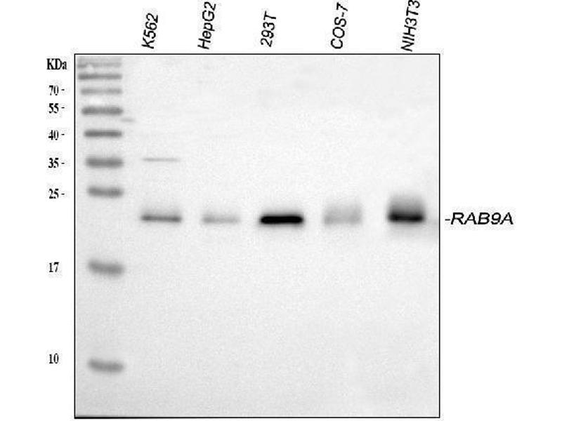 - Anti-Rab9/RAB9A Antibody (ABIN3044539). Tested in Flow Cytometry, IF, ICC, WB applications. This antibody reacts with Human, Monkey, Mouse. This is a premium antibody that guarantees superior quality, high affinity, and strong signals with minimal background in Western blot applications.