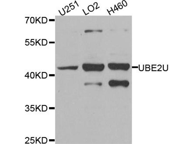 The Rabbit Polyclonal anti-UBE2U antibody has been validated for WB and IHC. It is suitable to detect UBE2U in samples from Human and Mouse.