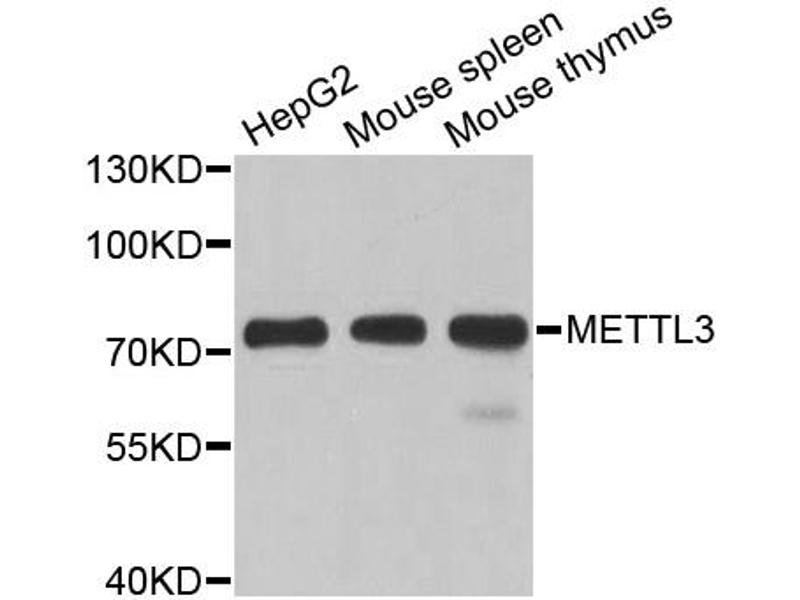 The Rabbit Polyclonal anti-METTL3 antibody (ABIN3035637) specifically detects METTL3 in WB, IHC and IP. The antibody is reactive with Human and Mouse samples.