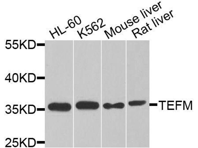 The Rabbit Polyclonal anti-TEFM antibody has been validated for WB and IHC. It is suitable to detect TEFM in samples from Human, Mouse and Rat.