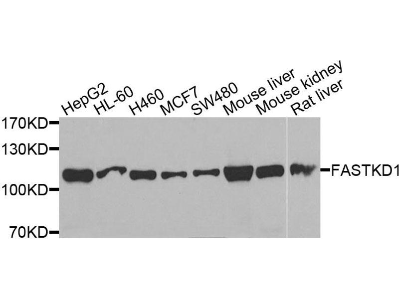 The Rabbit Polyclonal anti-FASTKD1 antibody is suitable to detect FASTKD1 in samples from Human, Mouse and Rat. It has been validated for WB and IHC.