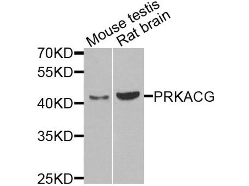 This anti-PRKACG antibody is a Rabbit Polyclonal antibody detecting PRKACG in WB and IF/ICC. Suitable for Human, Rat and Mouse.