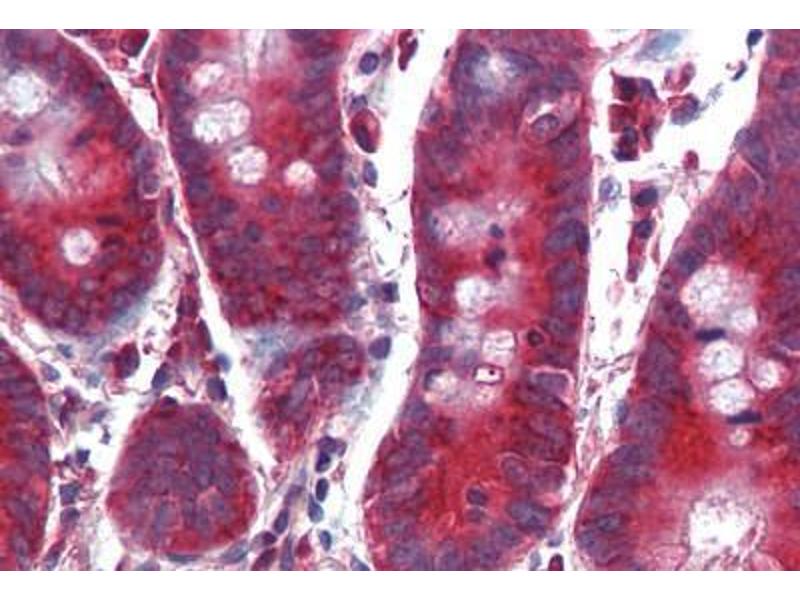Usage: Immunohistochemistry: This antibody was validated for use in immunohistochemistry on a panel of 21 formalin-fixed, paraffin-embedded (FFPE) human tissues after heat induced antigen retrieval in pH 6.0 citrate buffer. After incubation with the primary antibody, slides were incubated with biotinylated secondary antibody, followed by alkaline phosphatase-streptavidin and chromogen. The stained slides were evaluated by a pathologist to confirm staining specificity. The optimal working concentration for this antibody was determined to be 5 μg/mL. -