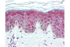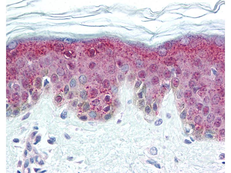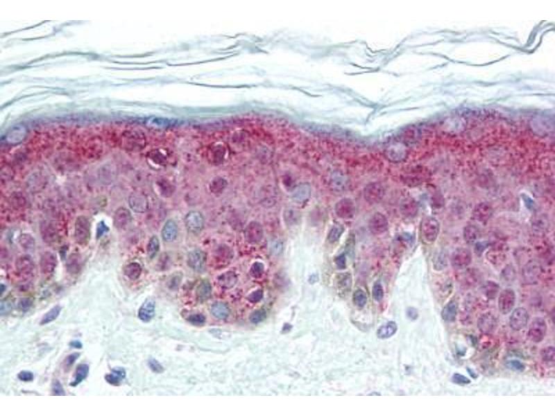 Usage: Immunohistochemistry: This antibody was validated for use in immunohistochemistry on a panel of 21 formalin-fixed, paraffin-embedded (FFPE) human tissues after heat induced antigen retrieval in pH 6.0 citrate buffer. After incubation with the primary antibody, slides were incubated with biotinylated secondary antibody, followed by alkaline phosphatase-streptavidin and chromogen. The stained slides were evaluated by a pathologist to confirm staining specificity. The optimal working concentration for this antibody was determined to be 5 μg/mL. -