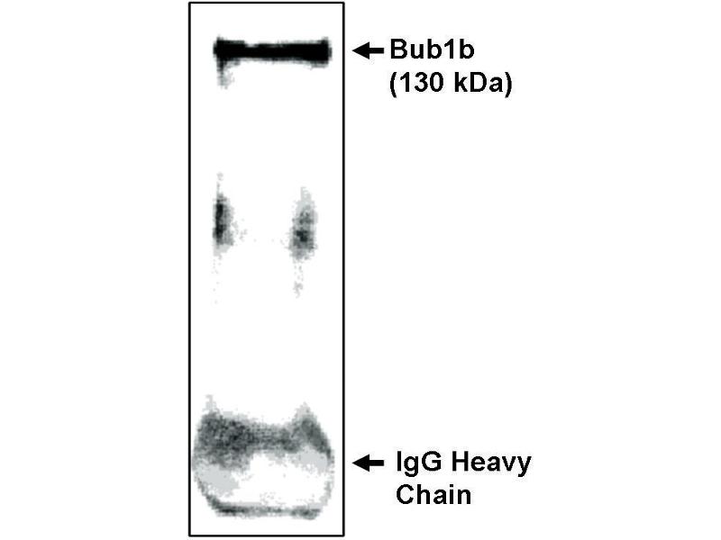 Antibody detects Bub1b in mitotic cells seperated from NIH/3T3 cells by IP/Westen blot (1-10 μg/mL) analysis. Detects a 130 kDa band. Optimal concentration should be evaluated by serial dilutions.