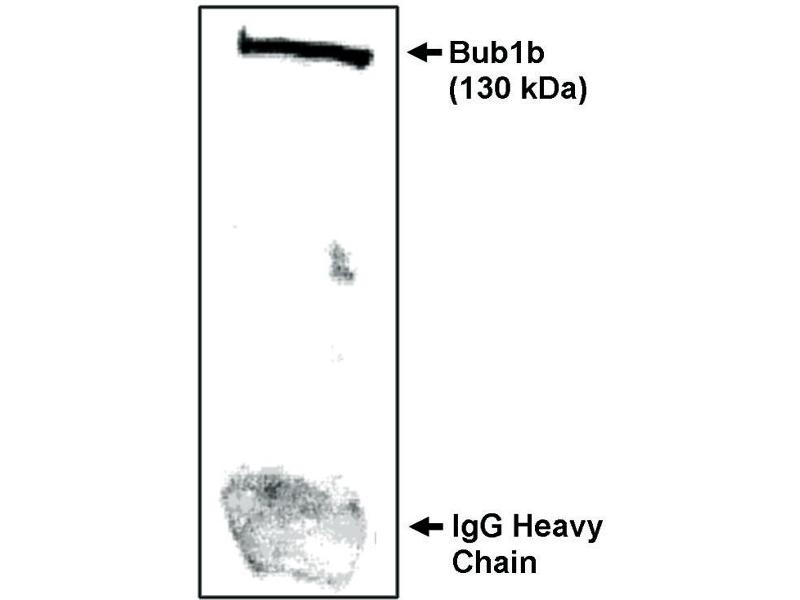 Antibody detects Bub1b in mitotic cells seperated from NIH/3T3 cells by IP/Westen blot analysis (1-10 μg/mL). Detects a 130 kDa band. Optimal concentration should be evaluated by serial dilutions.
