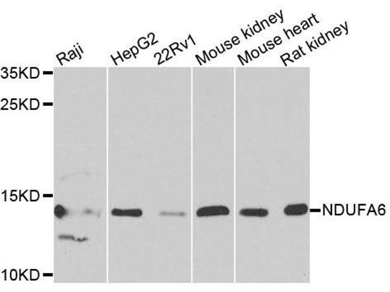 The Rabbit Polyclonal anti-NDUFA6 antibody has been validated for WB and IHC. It is suitable to detect NDUFA6 in samples from Human, Mouse and Rat.