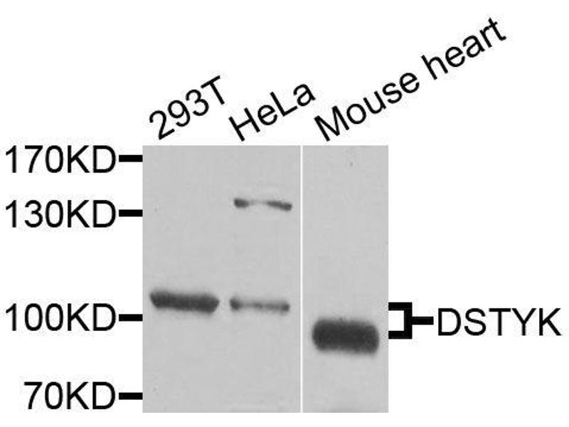 The Rabbit Polyclonal anti-DSTYK antibody (ABIN3068804) specifically detects DSTYK in WB.