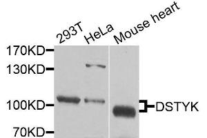 This anti-DSTYK antibody is a Rabbit Polyclonal antibody detecting DSTYK in WB. Suitable for Human and Mouse.