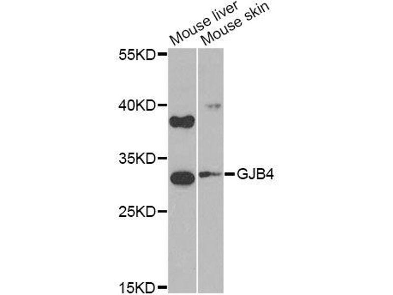 This Rabbit Polyclonal antibody specifically detects GJB4 in WB. It exhibits reactivity toward Mouse and Rat.