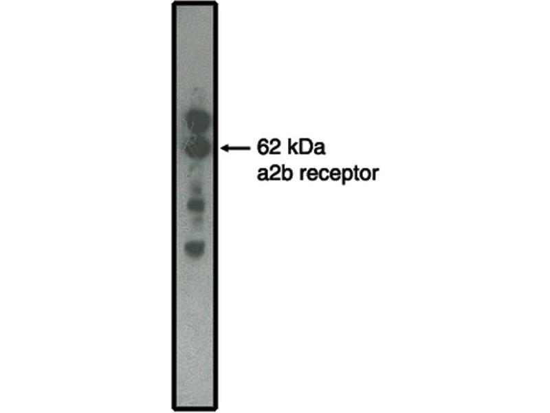 Antibody detects alpha2B Adrenergic Receptors in Western blots (1-5 μg/mL) and immunohistochemistry. Optimal concentration should be evaluated by serial dilutions.
