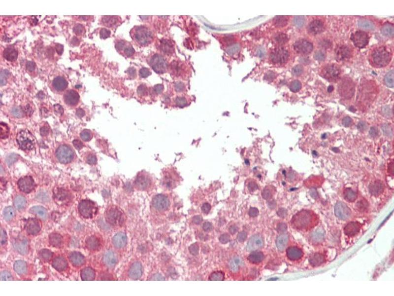 Immunohistochemistry: Paraffin embedded Human Testis. Recommended concentration: 5 μg/mL.