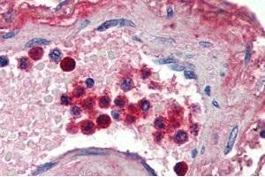 Immunohistochemistry: In paraffin embedded blood vessel shows strong staining of cytoplasm of neutrophils.. Recommended concentration, 2-4 μg/mL.