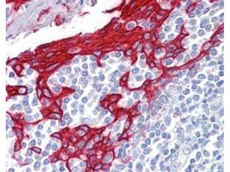 Immunohistochemistry: In paraffin embedded Human Tonsil shows strong layered, filamentous staining. Recommended concentration, 2-4 μg/mL.