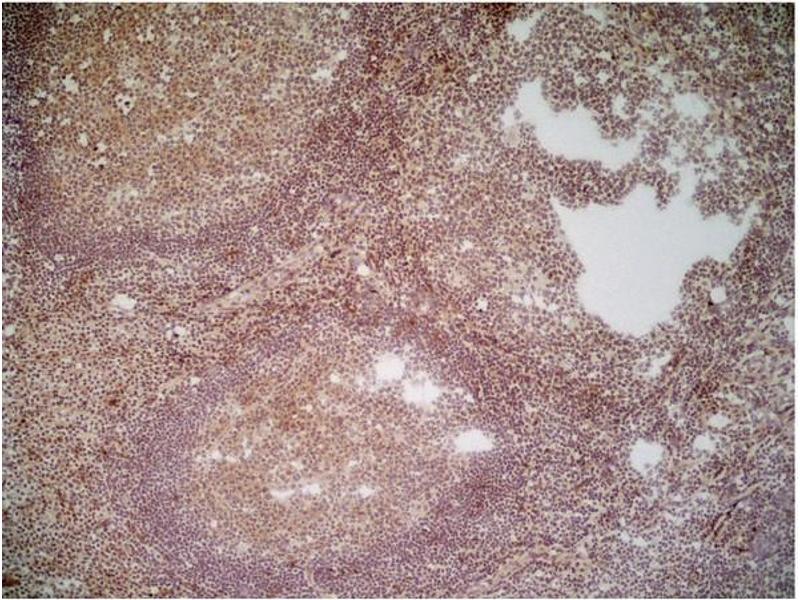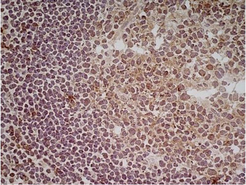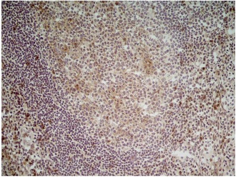 This antibody recognizes CD70, a 29 kDa type II transmembrane protein that belongs to the tumour necrosis factor (TNF) family. CD70 is expressed on a small number of activated T-cells and the majority of activated B-cells. Interaction of CD70 with its receptor, CD27, is thought to play an important role in lymphocyte activation, proliferation, survival and differentiation.