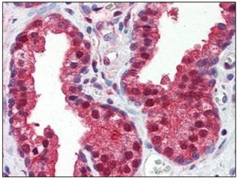 ELISA. Western blot: 1/1,000-1/3,000 (recommended starting dilution is 1/2,000). Immunohistochemistry on Paraffin Sections: 5 μg/mL. Other applications not tested. Optimal dilutions are dependent on conditions and should be determined by the user.