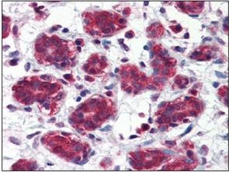 Prostate-specific membrane antigen (PSMA) is a 100-120 kDa type II transmembrane glycoprotein that is a glutamate-preferring carboxy-peptidase. Three functionally distinct proteins are encoded, including folylpoly-gamma-glutamate carboxypeptidase in the intestine, N-acetylated alpha-linked acidic dipeptidase 1 in the brain, and prostate-specific membrane antigen in the prostate. PSMA is highly expressed in prostate secretory-acinar epithelium, in some benign extraprostatic epithelial cells from breast, duodenum, and kidney tissues, and in prostate cancer.Synonyms: FOLH, Folate hydrolase 1, Folylpoly-gamma-glutamate carboxypeptidase, GCP2, Glutamate carboxypeptidase 2, Glutamate carboxypeptidase II, Membrane glutamate carboxypeptidase, N-acetylated-alpha-linked acidic dipeptidase I, NAALAD1, NAALAdase, PSM, Prostate-specific membrane antigen, Pteroylpoly-gamma-glutamate carboxypeptidase