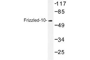 This gene is a member of the frizzled gene family. Members of this family encode 7-transmembrane domain proteins that are receptors for the Wingless type MMTV integration site family of signaling proteins. Most frizzled receptors are coupled to the beta-catenin canonical signaling pathway. Using array analysis, expression of this intronless gene is significantly up-regulated in two cases of primary colon cancer.Frizzled 10 is expressed during development in embryonic limbs, neural tube, and central nervous system. It has been reported to be expressed in brain, embryo, kidney, liver, lung and pancreas.Synonyms: Fz-10, FzE7, hFz10