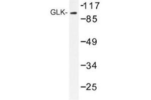 Several mammalian kinases have been identified which exhibit sequence similarity to the Saccharomyces cerevisiae serine/threonine kinase STE20. STE20 is involved in relaying signals from G-protein coupled receptors to cytosolic MAP kinase cascades, and it lies upstream of a MAP kinase kinase kinase. Mammalian STE20-like kinases include GLK, KHS, NIK, YSK1, HPK1, Krs-1, Krs-2 and human GC kinase. GLK (for GC-like kinase) is an 885 amino acid protein that shares a high degree of homology with GC kinase and HPK1. Like many of the STE20-like kinases, GLK specifically activates the JNK pathway. Epistasis studies with dominant negative mutants of MEKK1 suggest that GLK functions upstream of MEKK1 in the JNK signaling pathway.Synonyms: Germinal center kinase-related protein kinase, MAPK, MAPK/ERK kinase kinase kinase 3, MEKKK 3, Mitogen-activated protein kinase kinase kinase kinase 3, RAB8IPL1