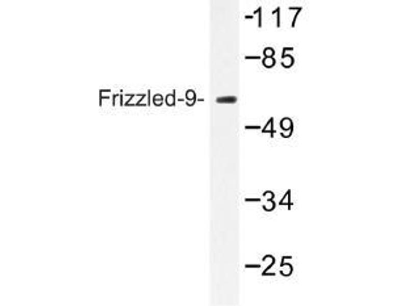 The frizzled gene, originally identified in Drosophila melanogaster, is involved in the development of tissue polarity. The mammalian homolog of frizzled as well as several secreted mammalian frizzled-related proteins (FRPs) have been described. The frizzled proteins contain seven transmembrane domains, a cysteine-rich domain in the extracellular region and a carboxy terminal Ser/Thr-xxx-Val motif. They function as receptors for Wnt and are generally coupled to G proteins. The frizzled-9 gene is located within the Williams Syndrome common deleted region at chromosomal band 7q11.23. Heterozygous deletion of the frizzled-9 gene may contribute to the Williams Syndrome phenotype. In mouse, frizzled-9 overexpression can induce the hyperphosphorylation and relocalization of Dvl-1 from the cytoplasm to the cell membrane and cytosolic β-catenin accumulation. In rat, frizzled-9 is important in Wnt/β-catenin signaling in 293T cells. Frizzled-9 is expressed predominantly in brain, testis, eye, skeletal muscle, and kidney.Synonyms: Fz-9, hFz9
