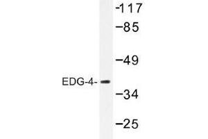 The EDG (endothelial differentiation gene) family of G protein coupled receptors consists of eight family members that bind lysophospholipid (LPL) mediators, including sphingosine-1-phosphate (SPP) and lysophosphatidic acid (LPA). EDG-1, EDG-3, EDG-5 (also designated H218 and AGR16) and EDG-8 bind SPP with high-affinity. EDG-6 is a low-affinity receptor for SPP. LPA preferentially binds to EDG-2, EDG-4 and EDG-7. The EDG receptors couple to multiple G proteins to signal through Ras, MAP kinase, Rho, Phospholipase C or other tyrosine kinases, which lead to cell survival, growth, migration and differentiation. EDG-1 signals through Gi proteins to activate Akt and is expressed in glioma cells. EDG-2 is expressed in brain, especially in white matter tract regions, while EDG-3 is expressed in cardiovascular tissue and in cerebellum. EDG-4 is highly expressed on leukocytes and brain, and EDG-5 has wide tissue distribution, including cardiovascular tissue and brain. Expressed in lymphoid and hematopoietic tissues and in lung, EDG-6 signals through Gi/o proteins, which activate growth related pathways.Synonyms: EDG4, Ipa-2, LPAR2, Lysophosphatidic acid receptor 2, Lysophosphatidic acid receptor Edg-4, endothelial differentiation, lysophosphatidic acid G-protein-coupled receptor 4