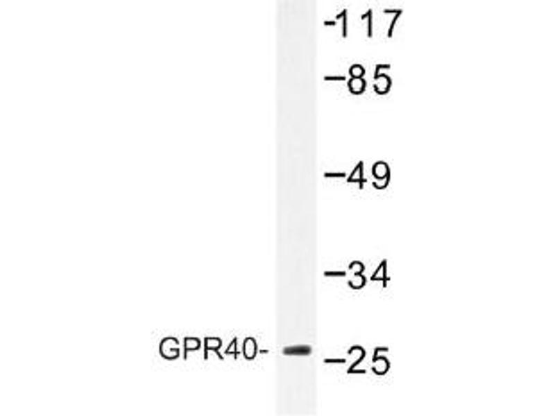 G protein coupled receptors provide attractive targets for drug therapy due to the sheer size and diversity of ligands within this receptor family. G proteincoupled receptor 40 (GPR40) functions as a cell-surface receptor for longchain free fatty acids (FFAs). FFAs provide an important energy source, but also function as signaling molecules in various pathways, notably the process of insulin secretion. In pancreatic tissue, the interaction of long chain FFAs with GPR40 amplifies glucose-stimulated insulin secretion from beta cells, suggesting a possible role for GPR40 in the treatment of diabetes associated with insulin-deficiency. Specifically, the Arg211His polymorphism in the GPR40 gene may contribute to the variation of insulin secretory capacity in Japanese men. Also, GPR40 may be involved in the control of breast cancer cell growth by fatty acids and, therefore, provide a link between fat and cancer.Synonyms: Free fatty acid receptor 1, G-protein coupled receptor 40