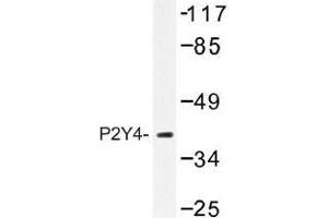 The product of this gene belongs to the family of G-protein coupled receptors. This family has several receptor subtypes with different pharmacological selectivity, which overlaps in some cases, for various adenosine and uridine nucleotides. This receptor is responsive to uridine nucleotides, partially responsive to ATP, and not responsive to ADP. P2Y4 expression has been documented in blood, bone, heart, lung, pancreas, placenta, and umbilical cord.Synonyms: NRU, P2P, P2Y purinoceptor 4, Purinergic receptor, UNR, Uridine nucleotide receptor