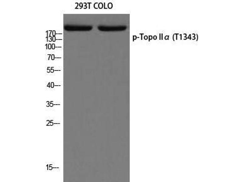 - Phospho-Topo IIα (T1343) Polyclonal Antibody detects endogenous levels of Topo IIα protein only when phosphorylated at T1343.
