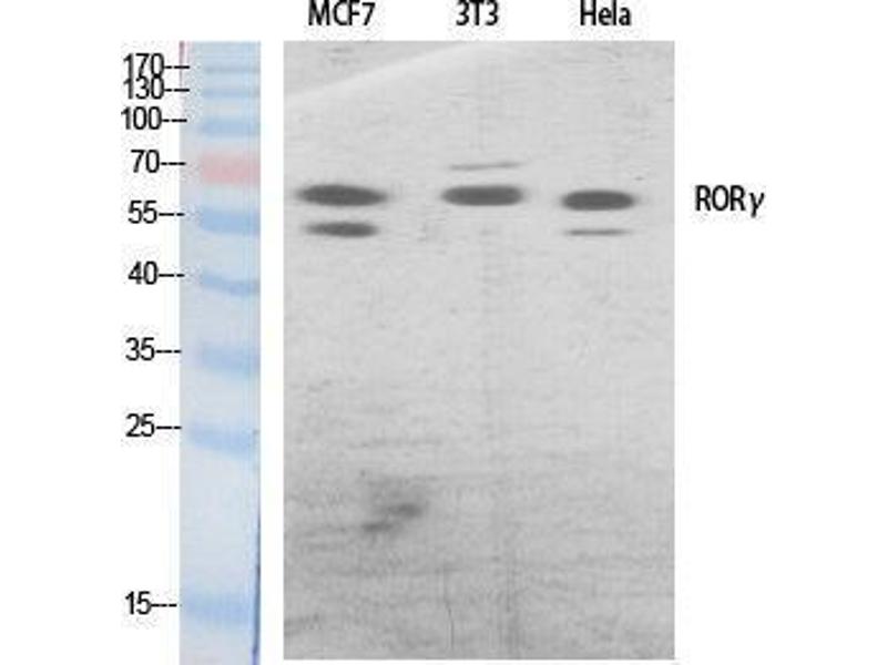 - RORγ Polyclonal Antibody detects endogenous levels of RORγ protein.