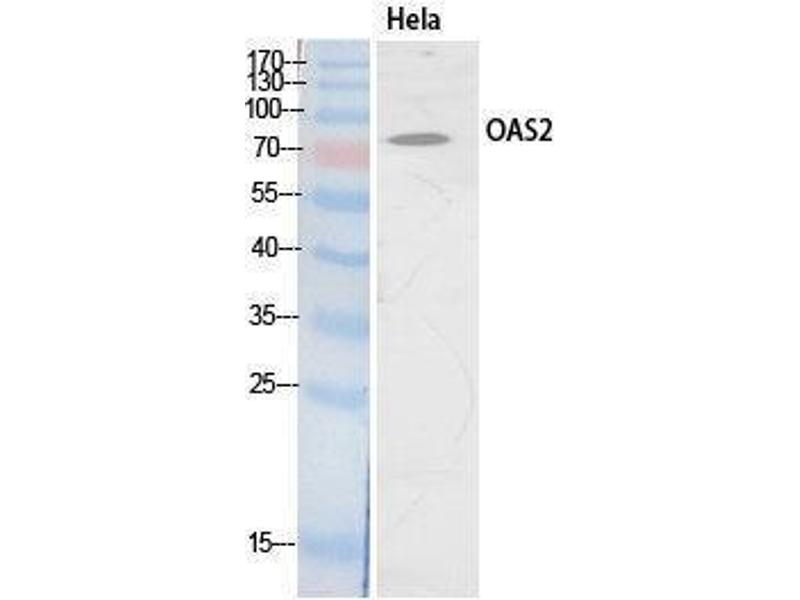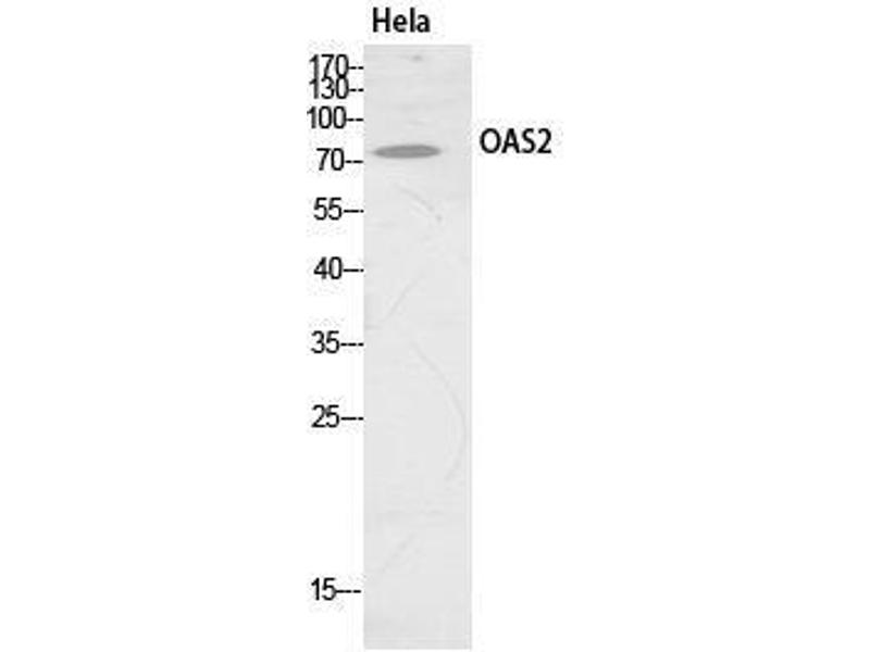 OAS2 Polyclonal Antibody detects endogenous levels of OAS2 protein.