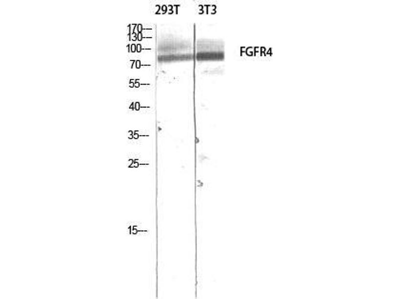 FGFR-4 Polyclonal Antibody detects endogenous levels of FGFR-4 protein.