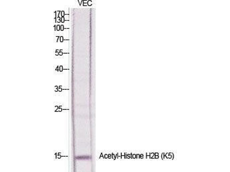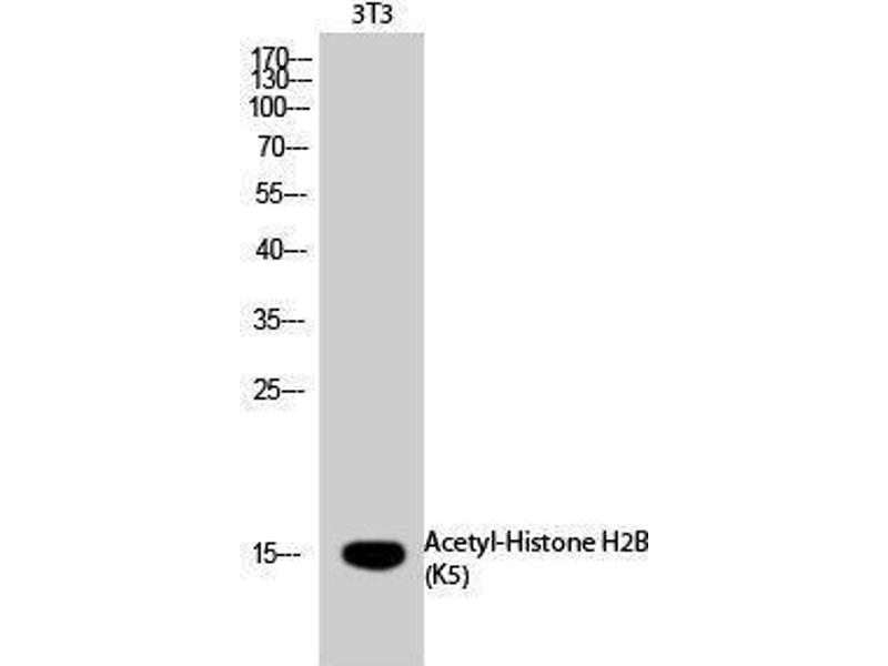 Acetyl-Histone H2B (K5) Polyclonal Antibody detects endogenous levels of Histone H2B protein only when acetylated at K5.
