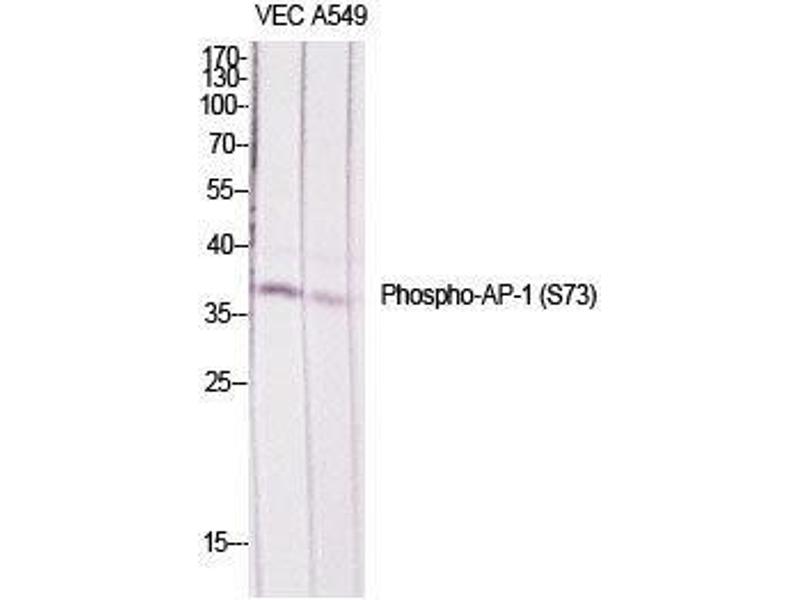 Phospho-AP-1 (S73) Polyclonal Antibody detects endogenous levels of AP-1 protein only when phosphorylated at S73.