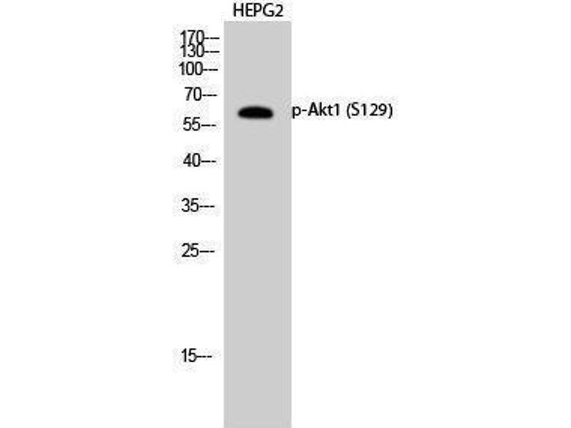 Phospho-Akt1 (S129) Polyclonal Antibody detects endogenous levels of Akt1 protein only when phosphorylated at S129.