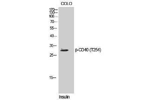 - Phospho-CD40 (T254) Polyclonal Antibody detects endogenous levels of CD40 protein only when phosphorylated at T254.