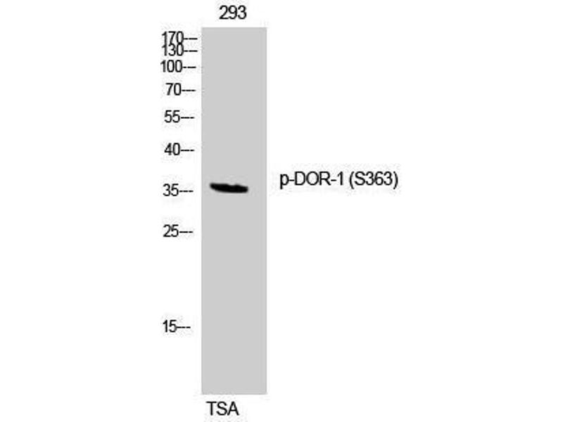 - Phospho-DOR-1 (S363) Polyclonal Antibody detects endogenous levels of DOR-1 protein only when phosphorylated at S363.