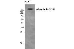 - Phospho-Integrin β4 (Y1510) Polyclonal Antibody detects endogenous levels of Integrin β4 protein only when phosphorylated at Y1510.