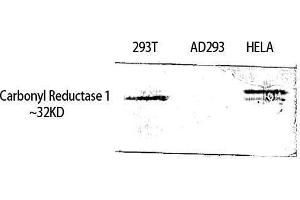 - Carbonyl Reductase 1 Polyclonal Antibody detects endogenous levels of Carbonyl Reductase 1 protein.