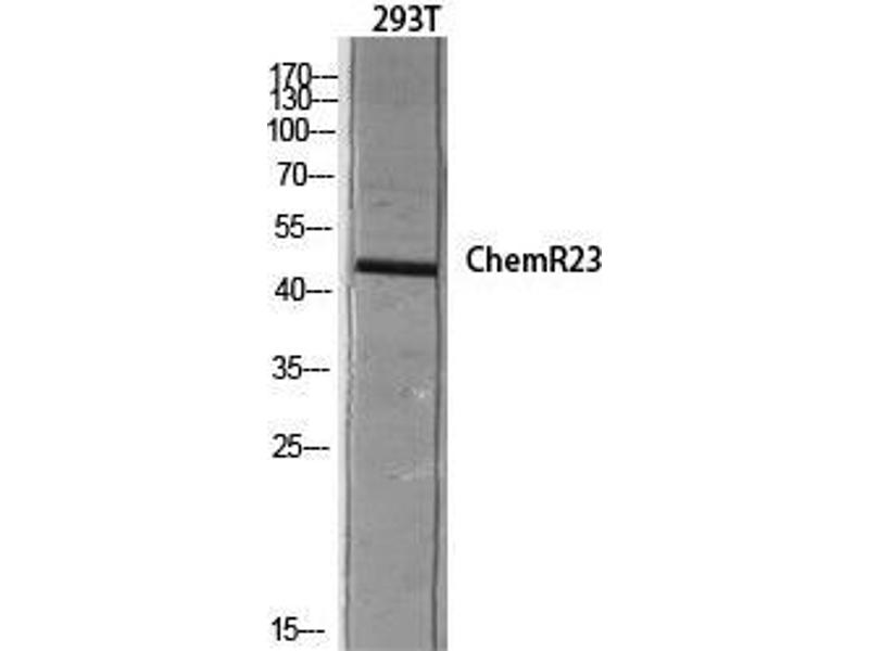 - ChemR23 Polyclonal Antibody detects endogenous levels of ChemR23 protein.