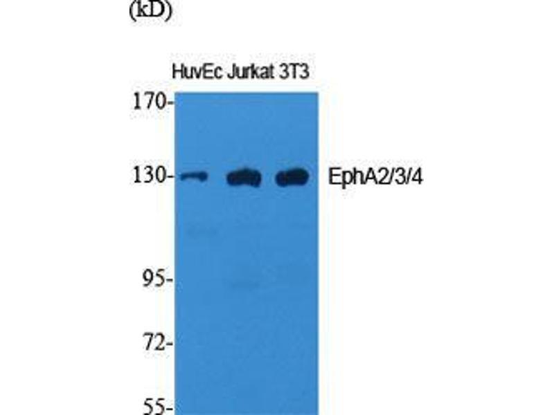 EphA2/3/4 Polyclonal Antibody detects endogenous levels of EphA2/3/4 protein.