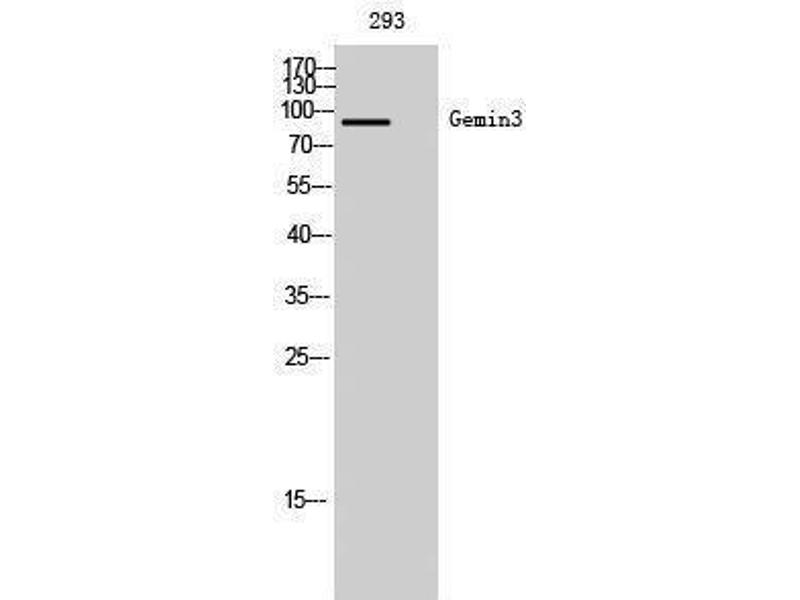 Gemin3 Polyclonal Antibody detects endogenous levels of Gemin3 protein.