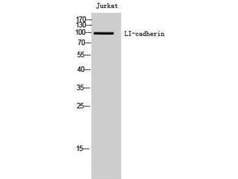 LI-cadherin Polyclonal Antibody detects endogenous levels of LI-cadherin protein.