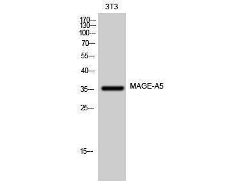 MAGE-A5 Polyclonal Antibody detects endogenous levels of MAGE-A5 protein.