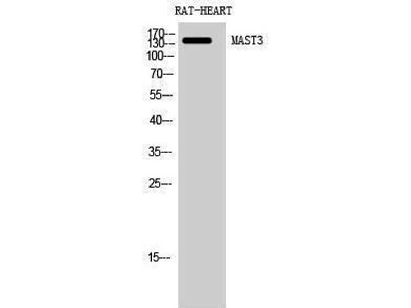 The Rabbit Polyclonal anti-MAST3 antibody (ABIN3185472) specifically detects MAST3 in ELISA and WB.